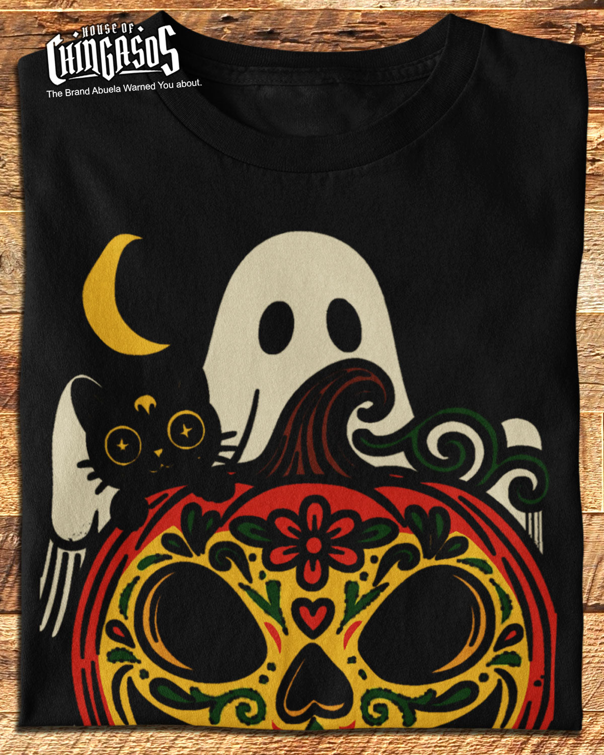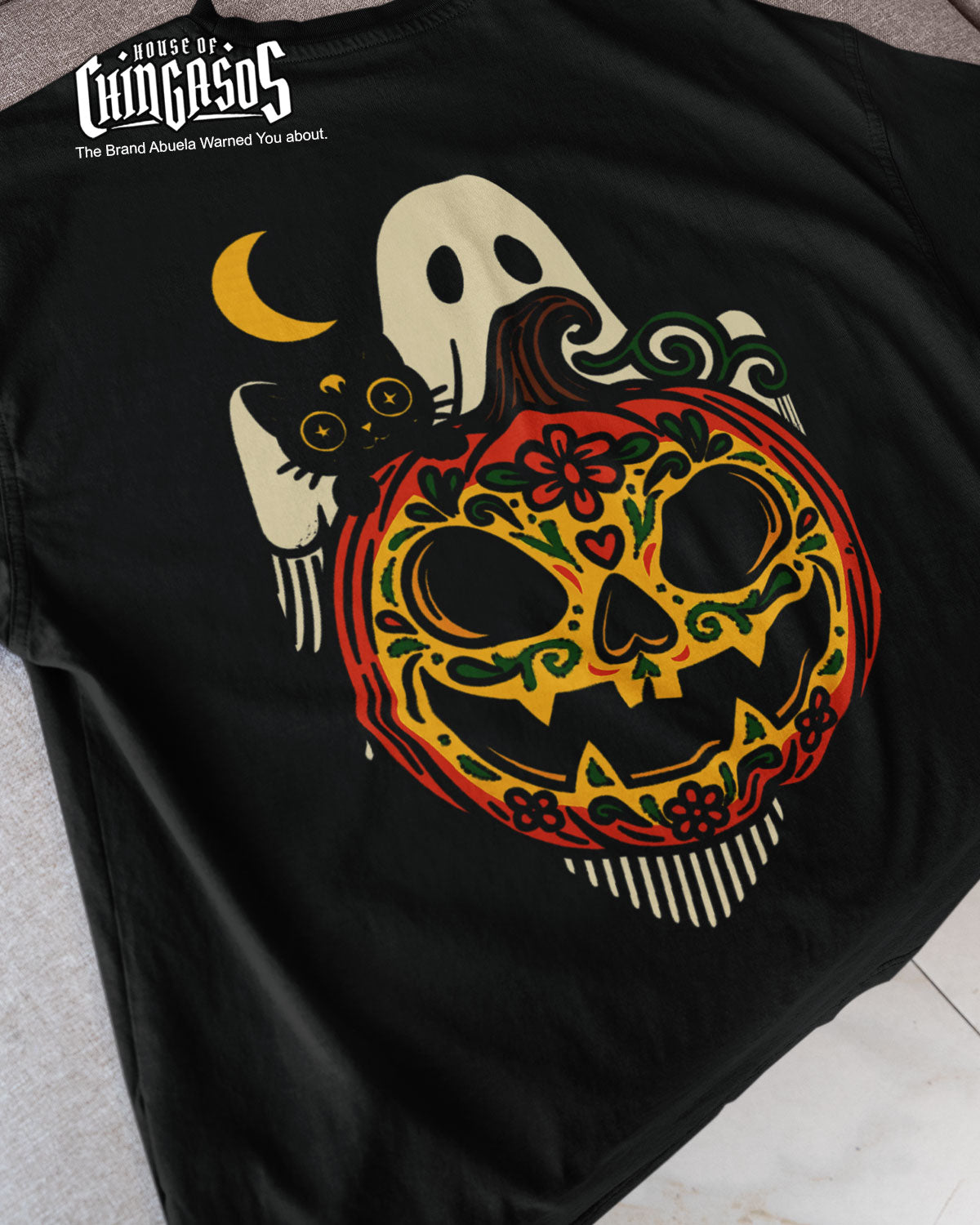 El Phantasma, El Gato y La Calabaza are here for Halloween, Dia De Los Muertos just pa la Raza in this beautiful art de la calle print familia. Sharing our Cultura, humor y corazon. Asi Es!