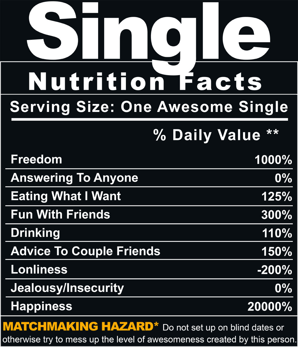 Undisputed Facts. What makes up being an awesome single, it's all here for you to wear proudly all year long. We'd make one for couples, but we don't want that kind of junk food. ;)